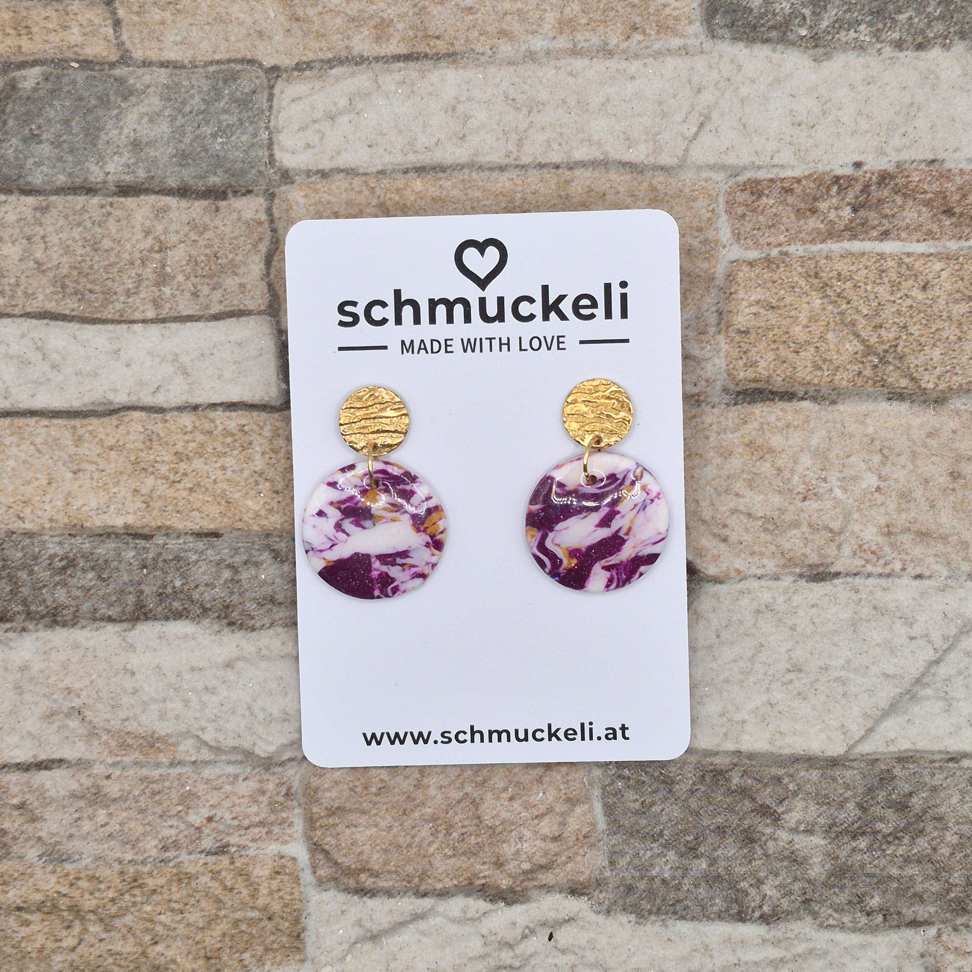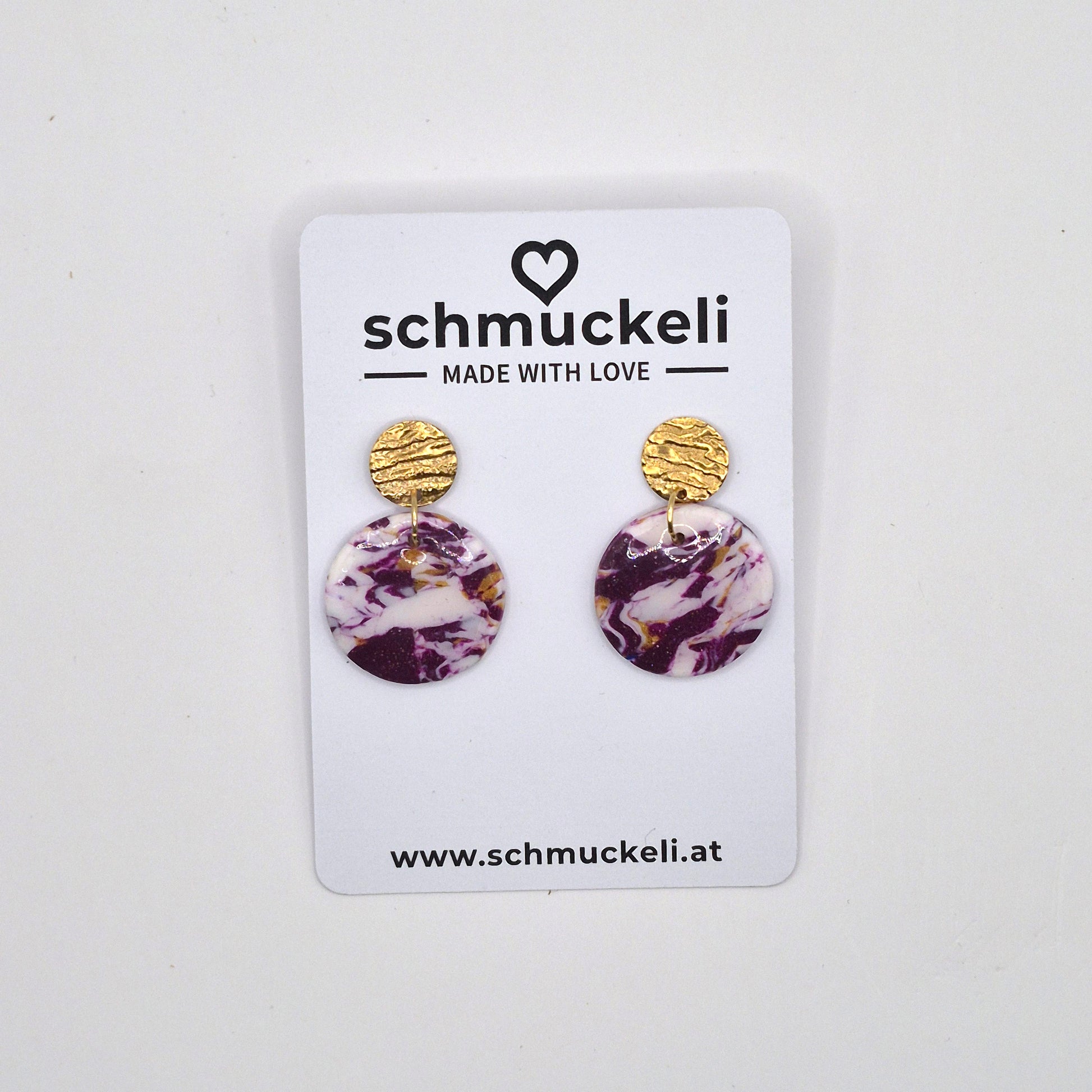 Amethysta – Marmorierte Ohrringe in Lila, Weiß & Gold