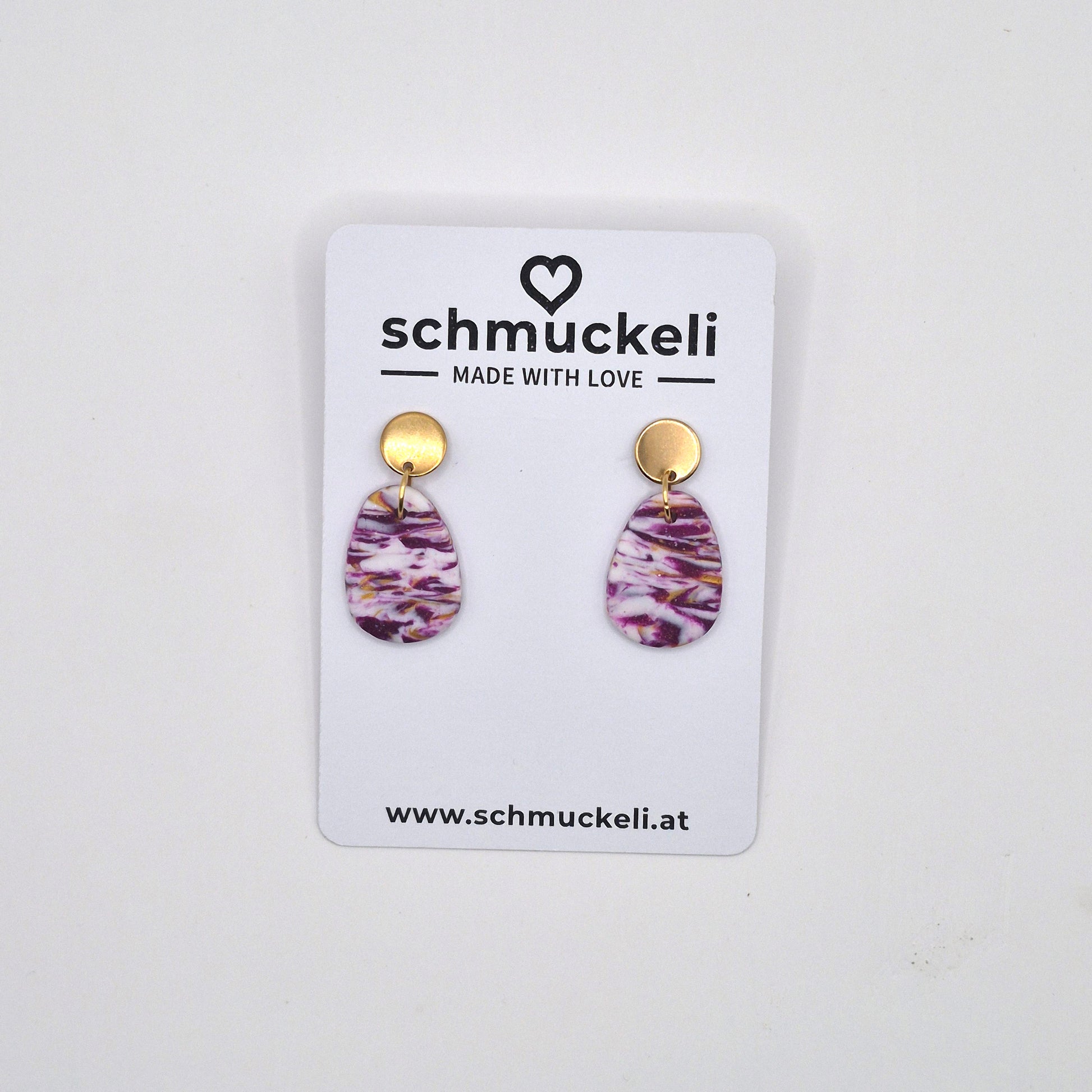 Handgefertigte Ohrringe aus hochwertigem Polymer Clay in einem einzigartigen marmorierten Design – inspiriert von den satten Farben reifer Beeren. Jedes Paar ist ein Unikat und wird mit viel Liebe zum Detail gefertigt. Die leichten Ohrstecker mit goldfarbenem Verbindungselement sind angenehm zu tragen und setzen stilvolle Akzente – perfekt für besondere Anlässe oder als Hingucker im Alltag.