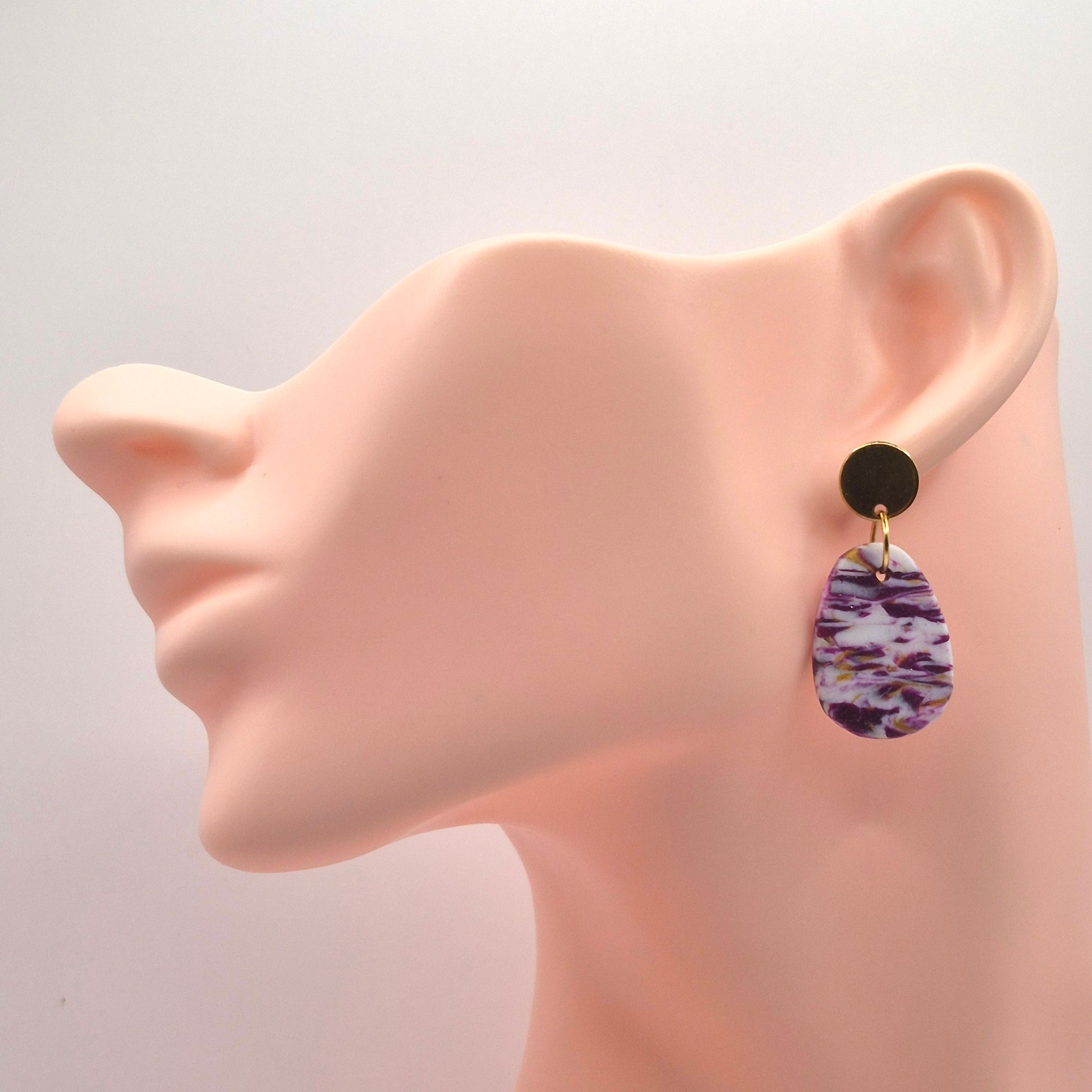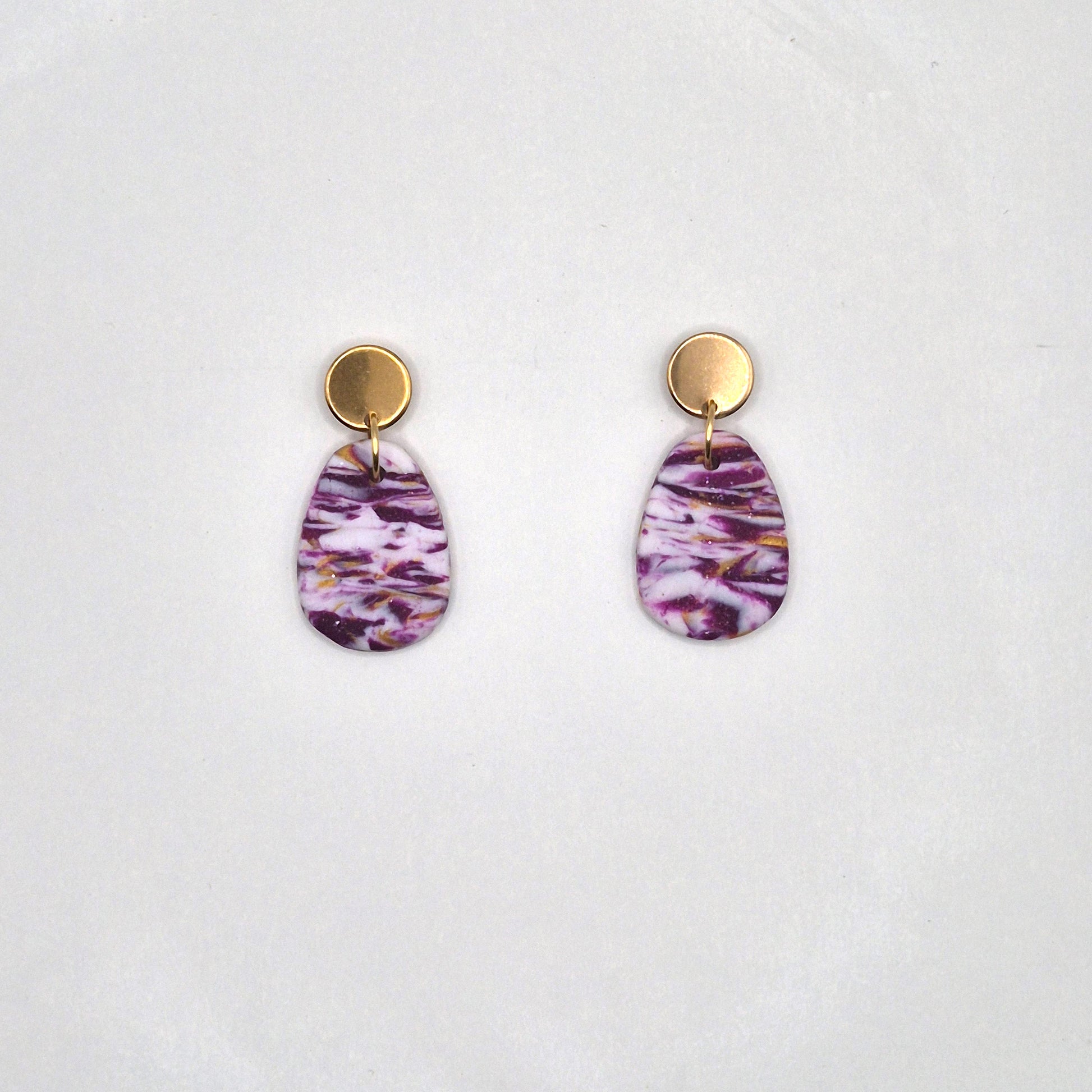 Beerenrausch – Marmorierte Ohrringe in Lila & Gold aus Polymer Clay