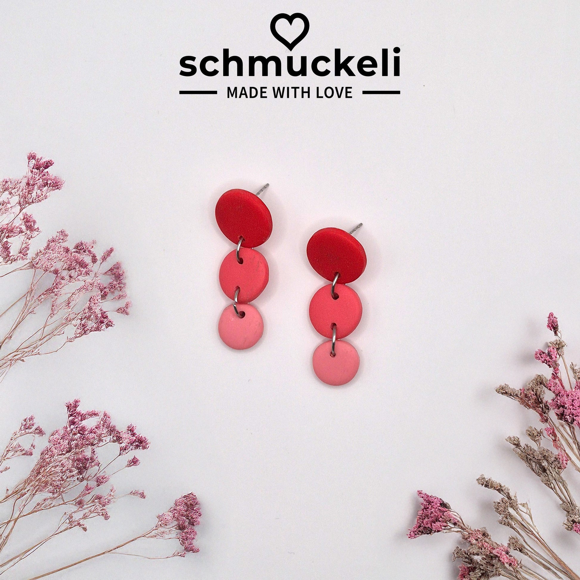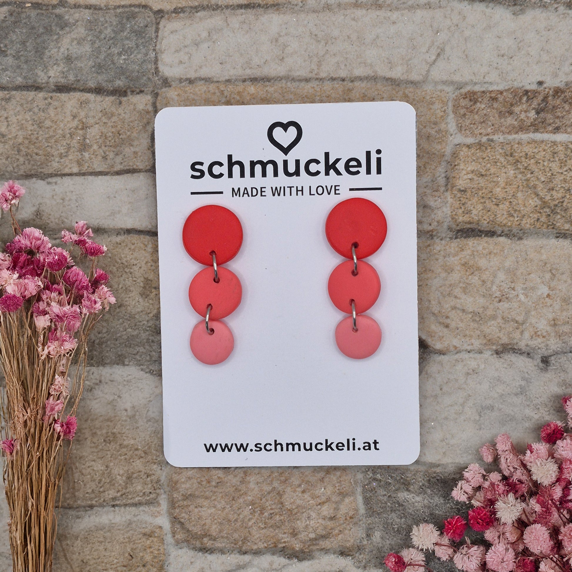 FARBTANZ Beerenklang - dreiteilige Ohrringe aus Polymer Ton in Rottönen
