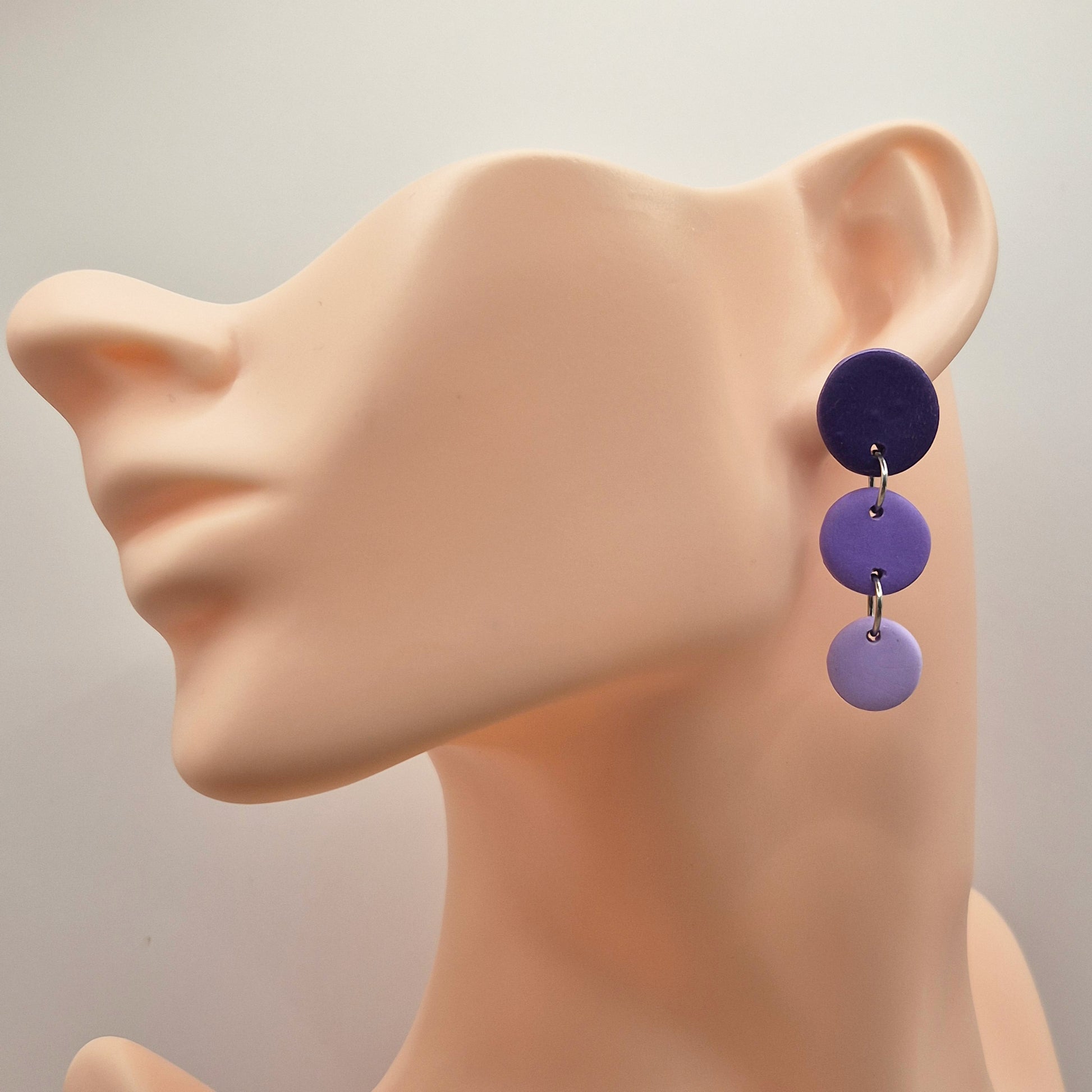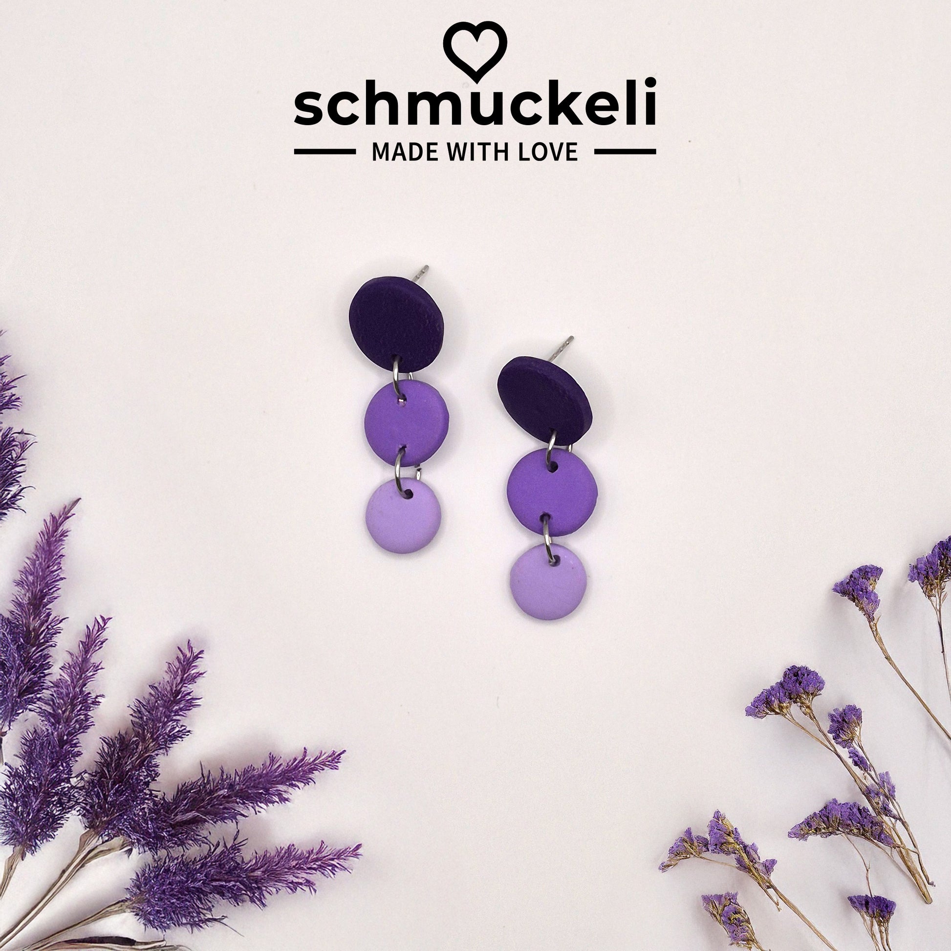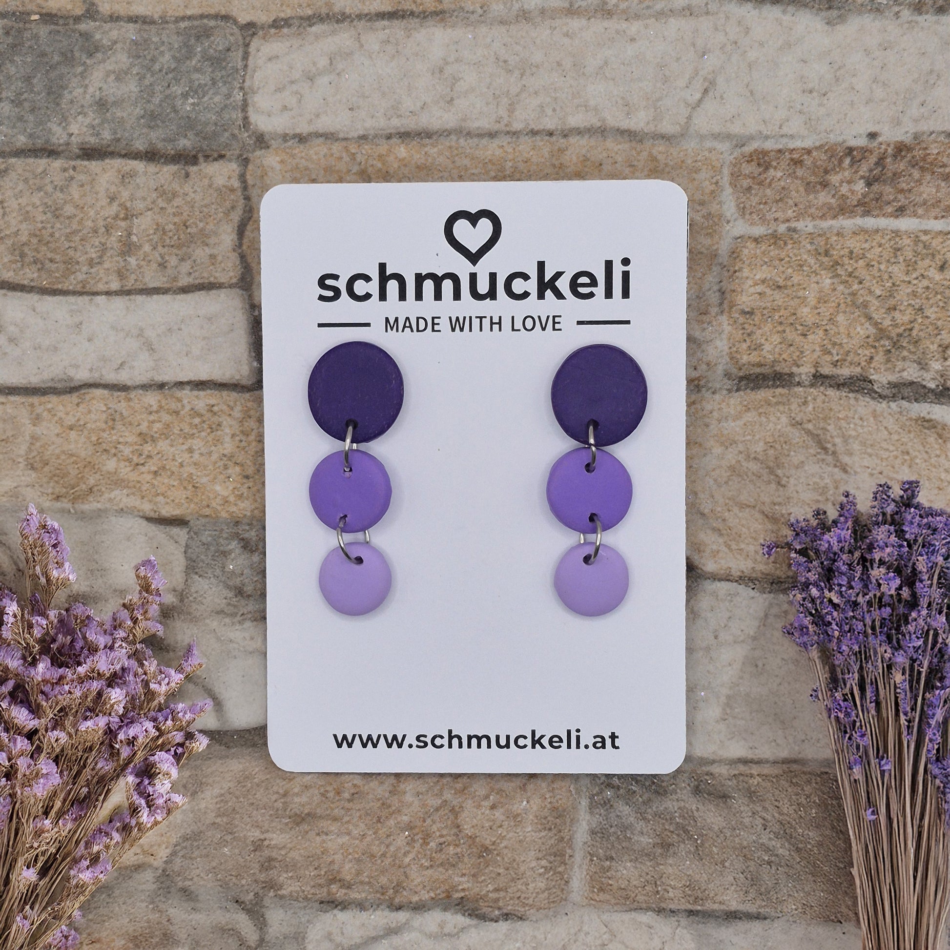 FARBTANZ Fliederflug - dreiteilige Ohrringe aus Polymer Ton in Lilatönen