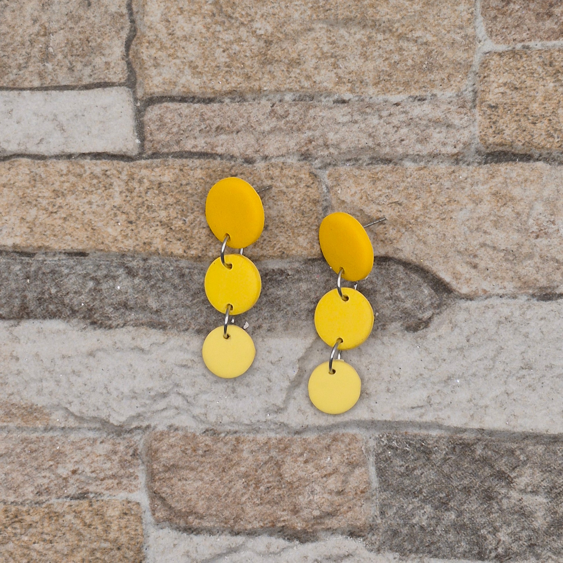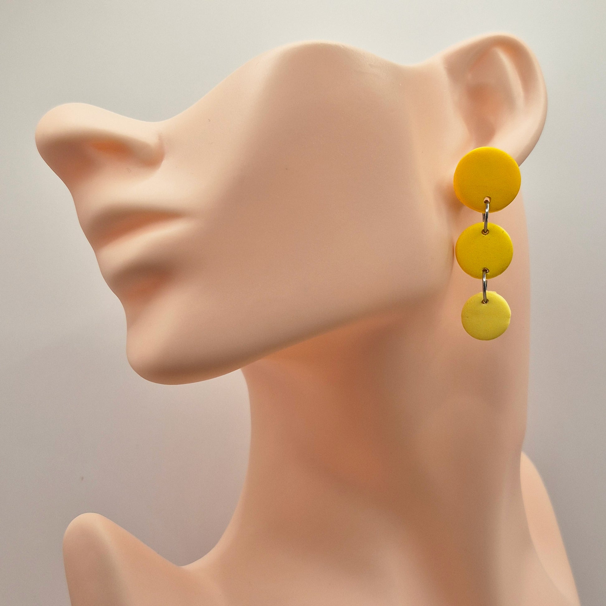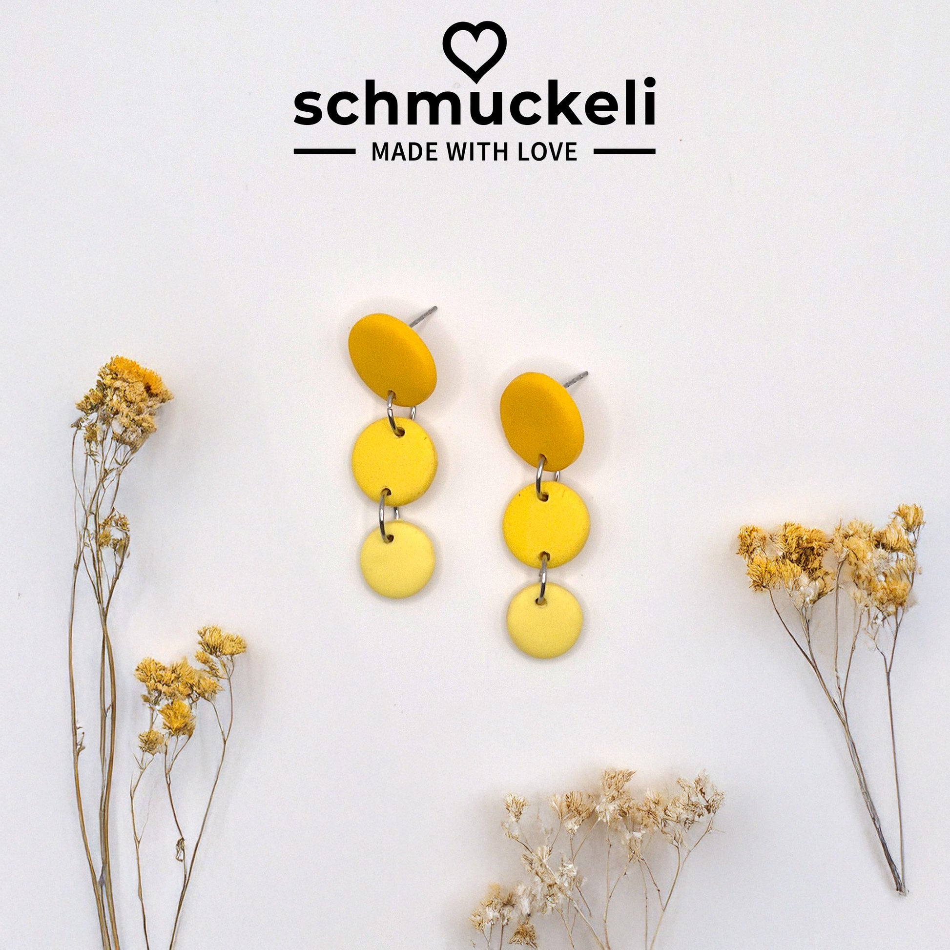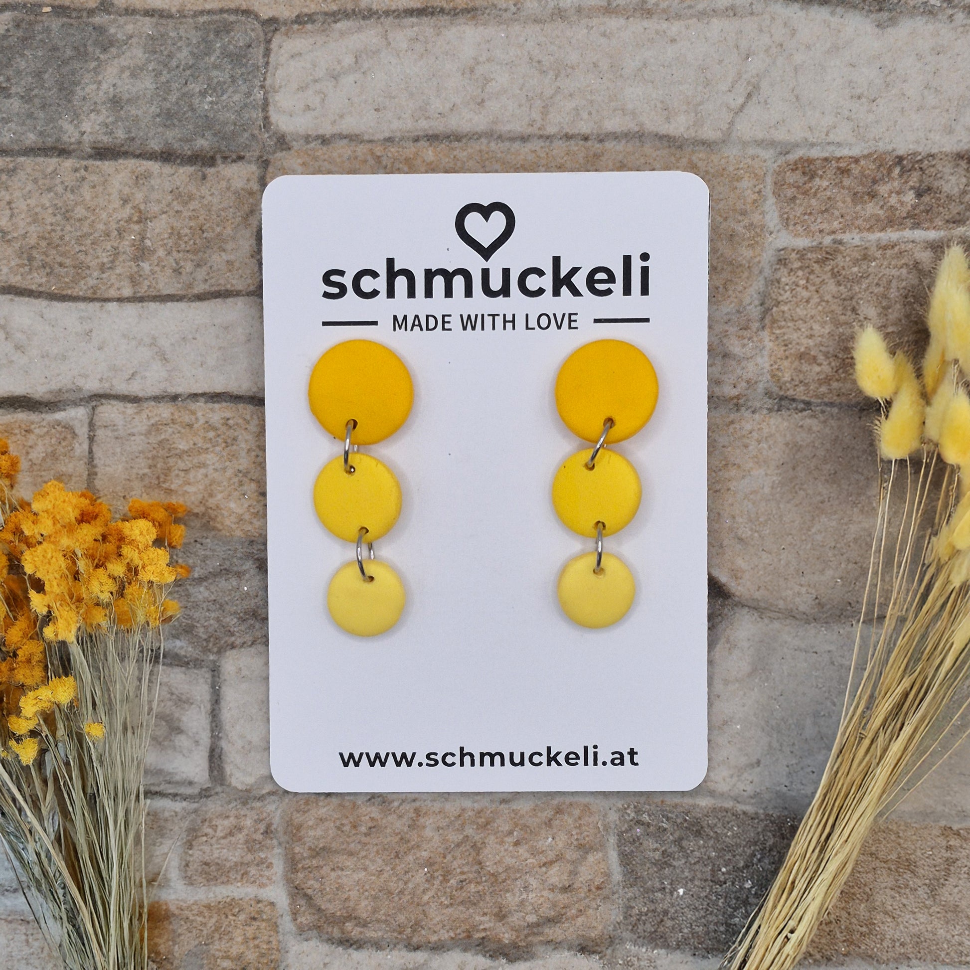 FARBTANZ Sonnenwirbel - dreiteilige Ohrringe aus Polymer Ton in Gelbtönen
