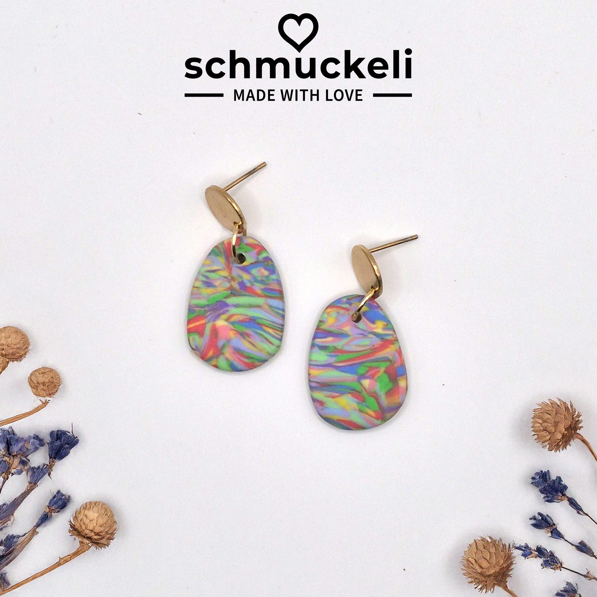 Jeder Ohrring ist handgefertigt aus hochwertigem Polymer Ton – leicht zu tragen, ausdrucksstark im Stil. Jedes Paar ist ein Unikat – kleine Unregelmäßigkeiten gehören zum Charme echter Handarbeit.
