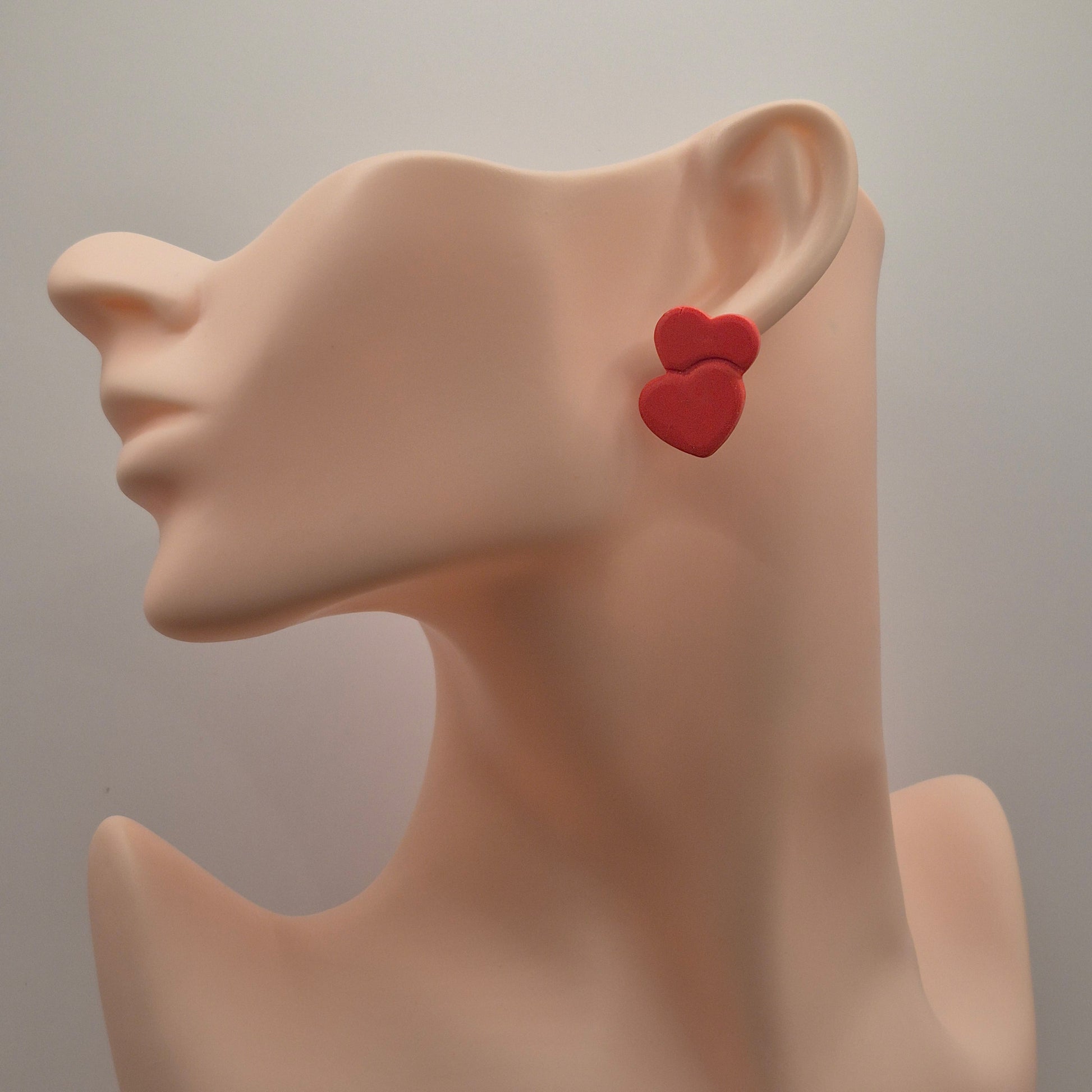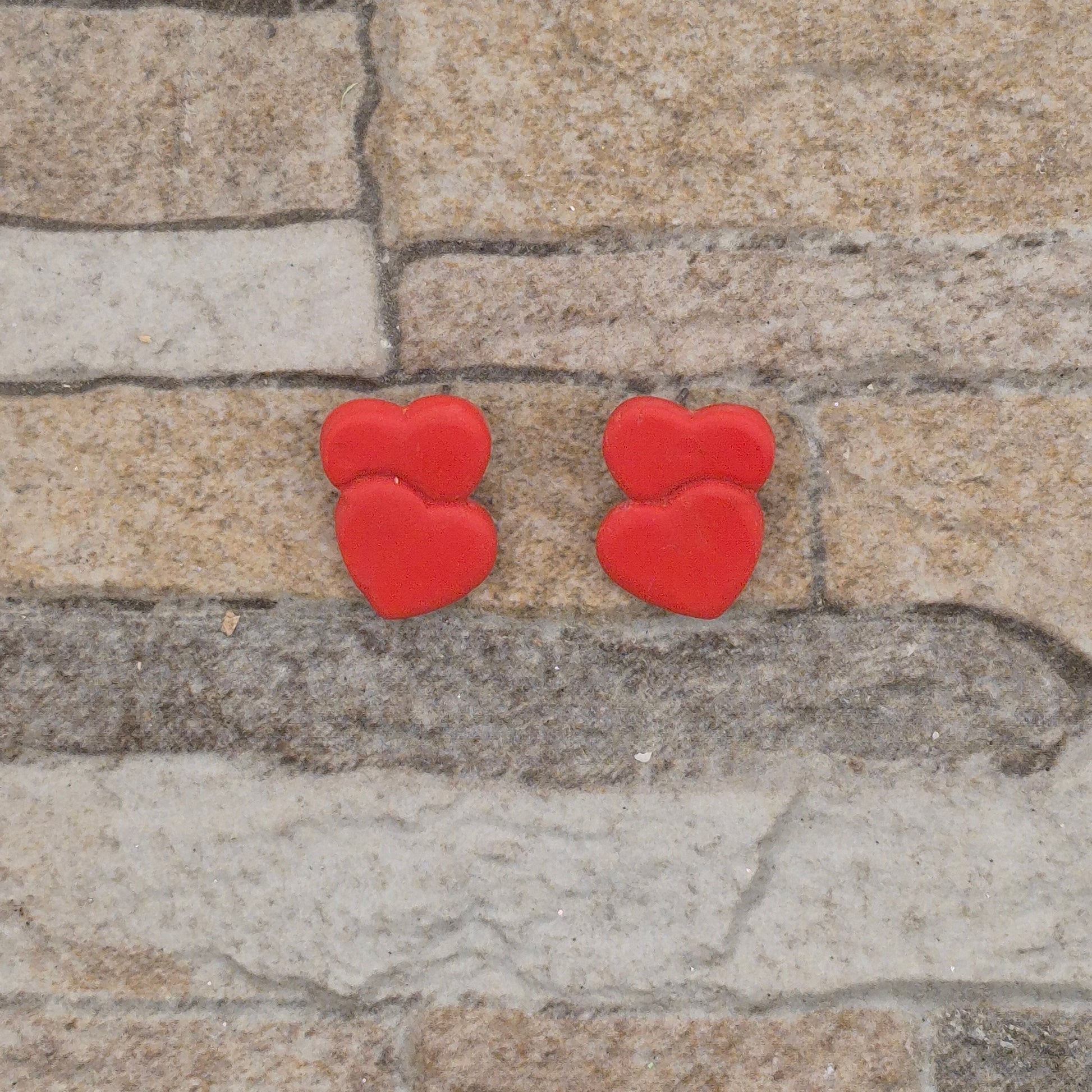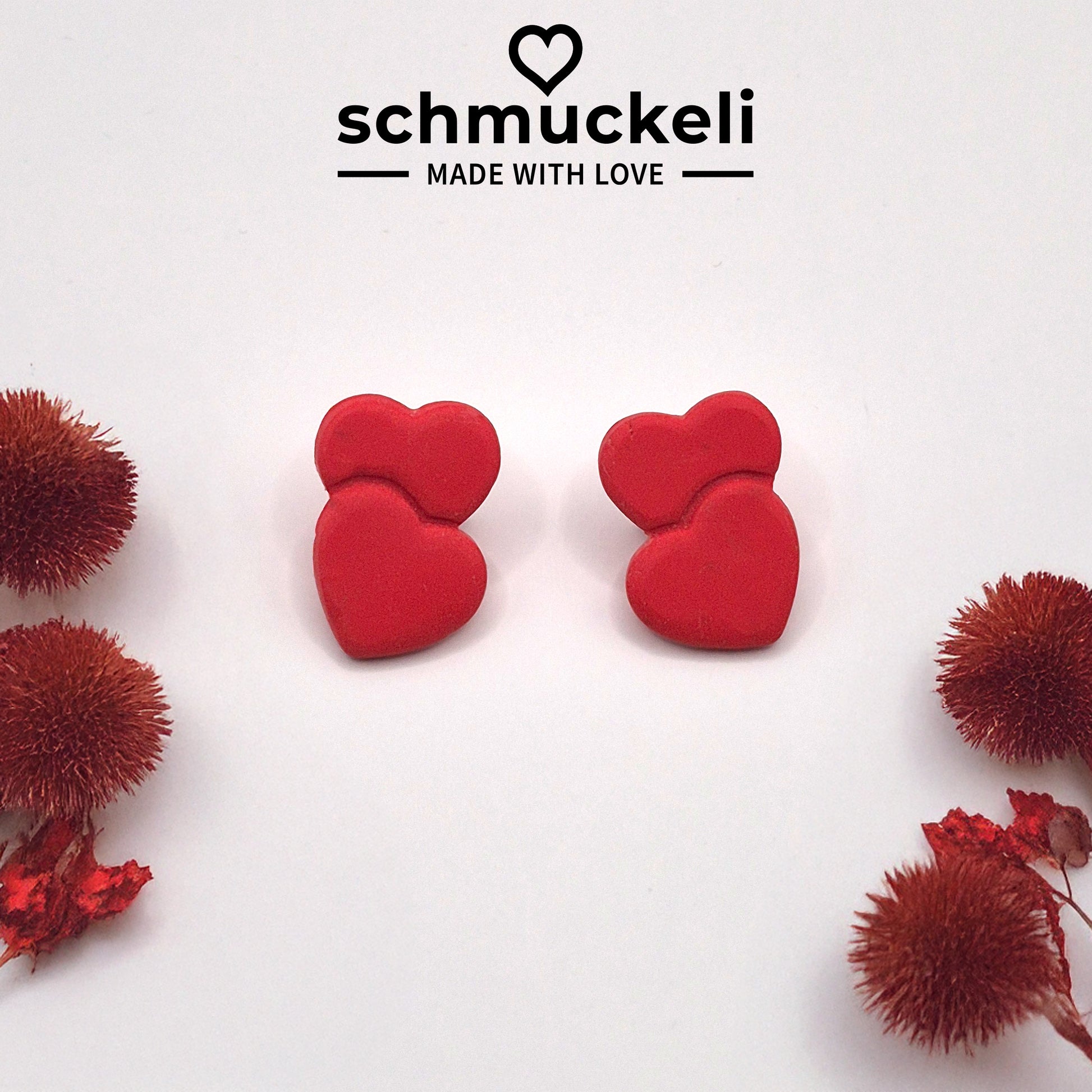 Herzduett - Rote Ohrringe aus Polymer Ton in Doppelherzform