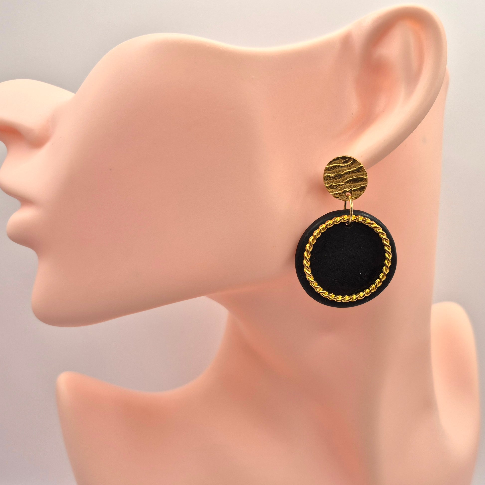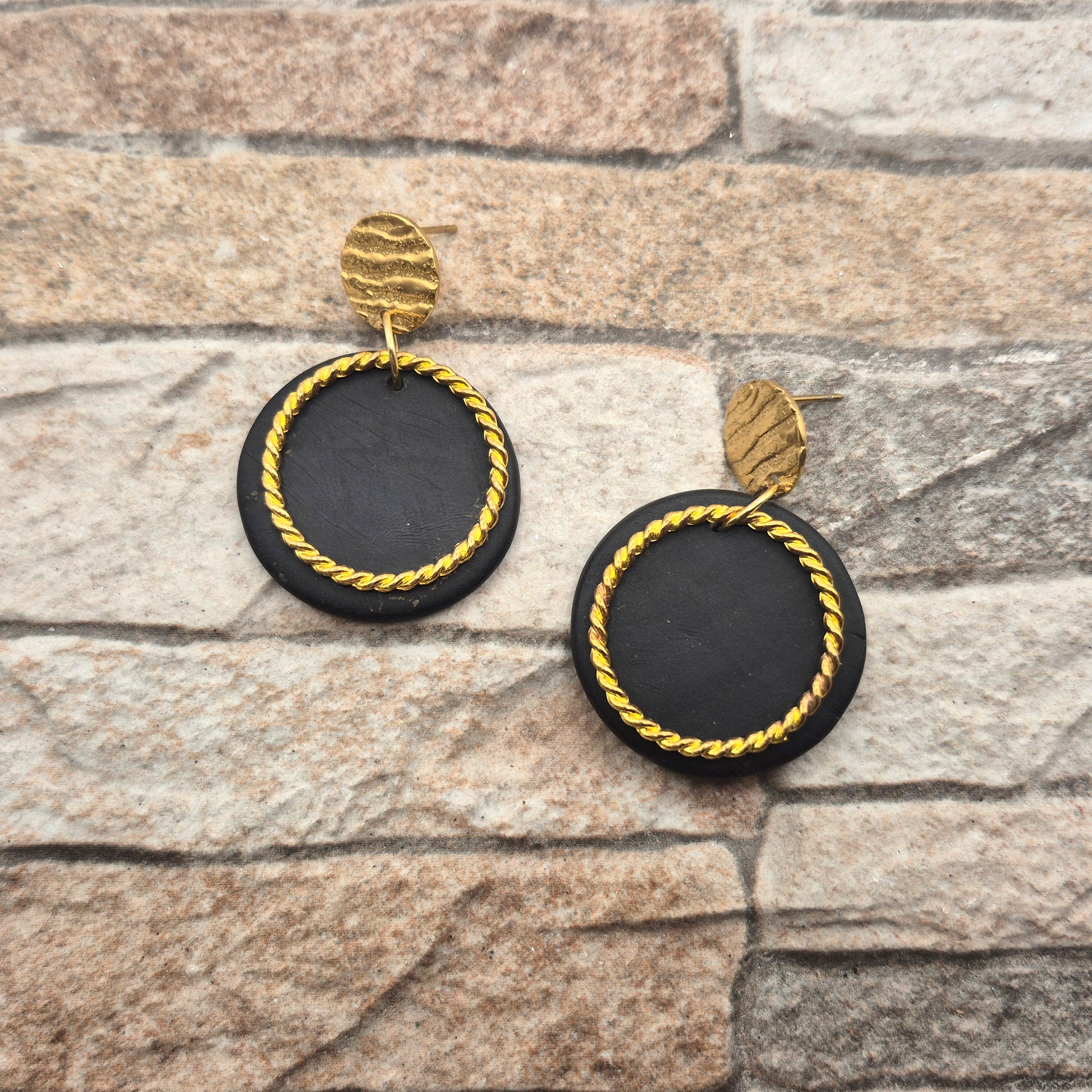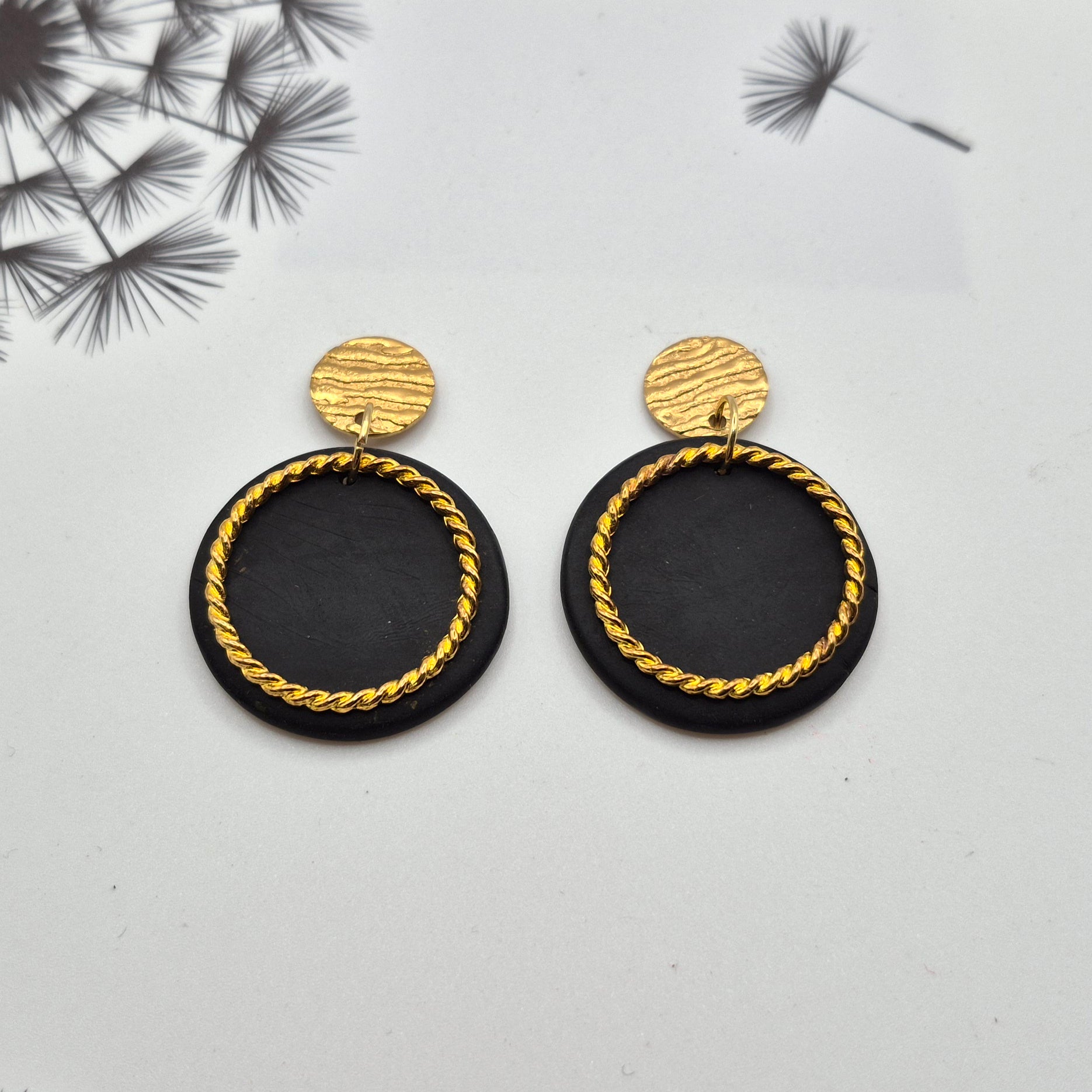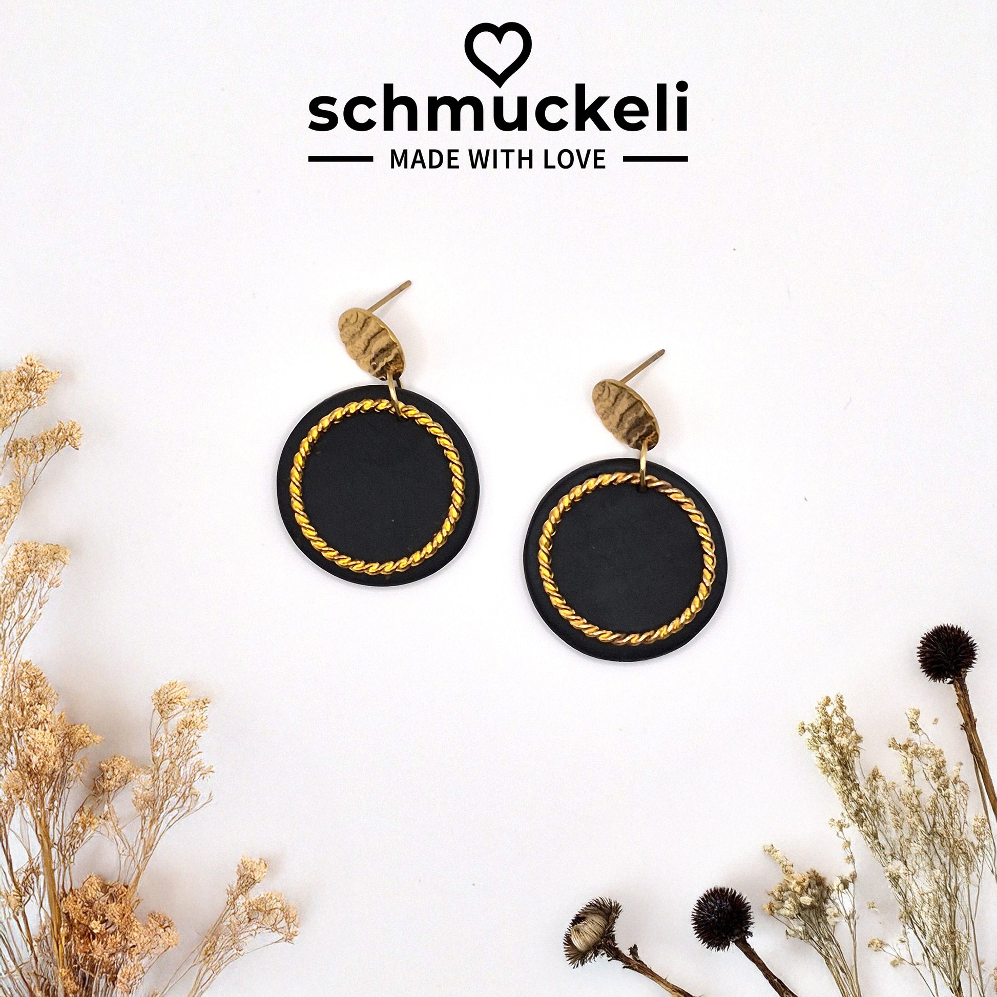 KREISGOLD Nachtschimmer - schwarze Ohrringe aus Polymer Ton mit verdrehtem Ring
