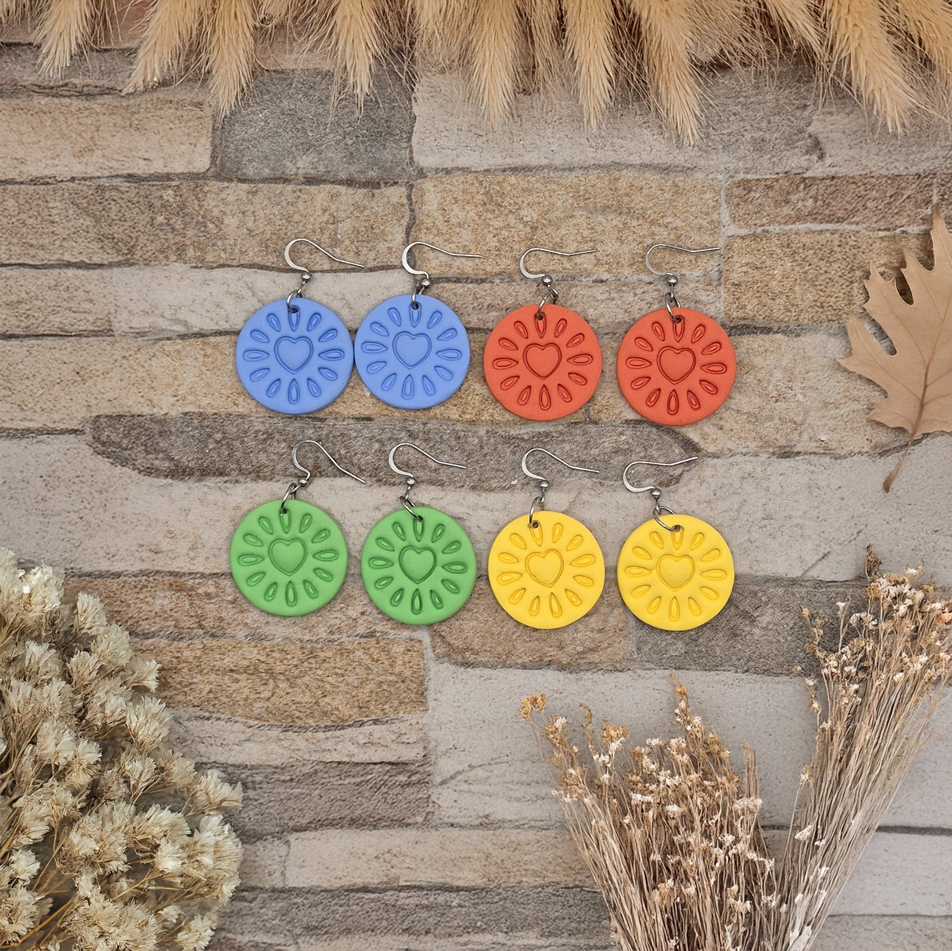 Jeder Ohrring ist handgefertigt aus hochwertigem Polymer Ton – leicht zu tragen, ausdrucksstark im Stil.