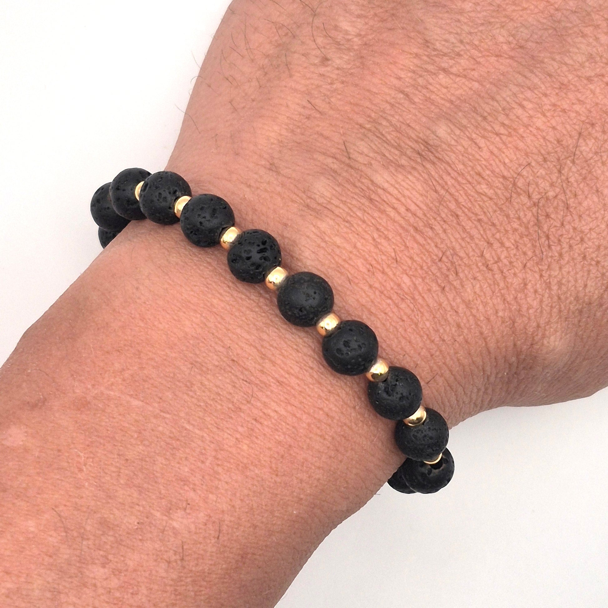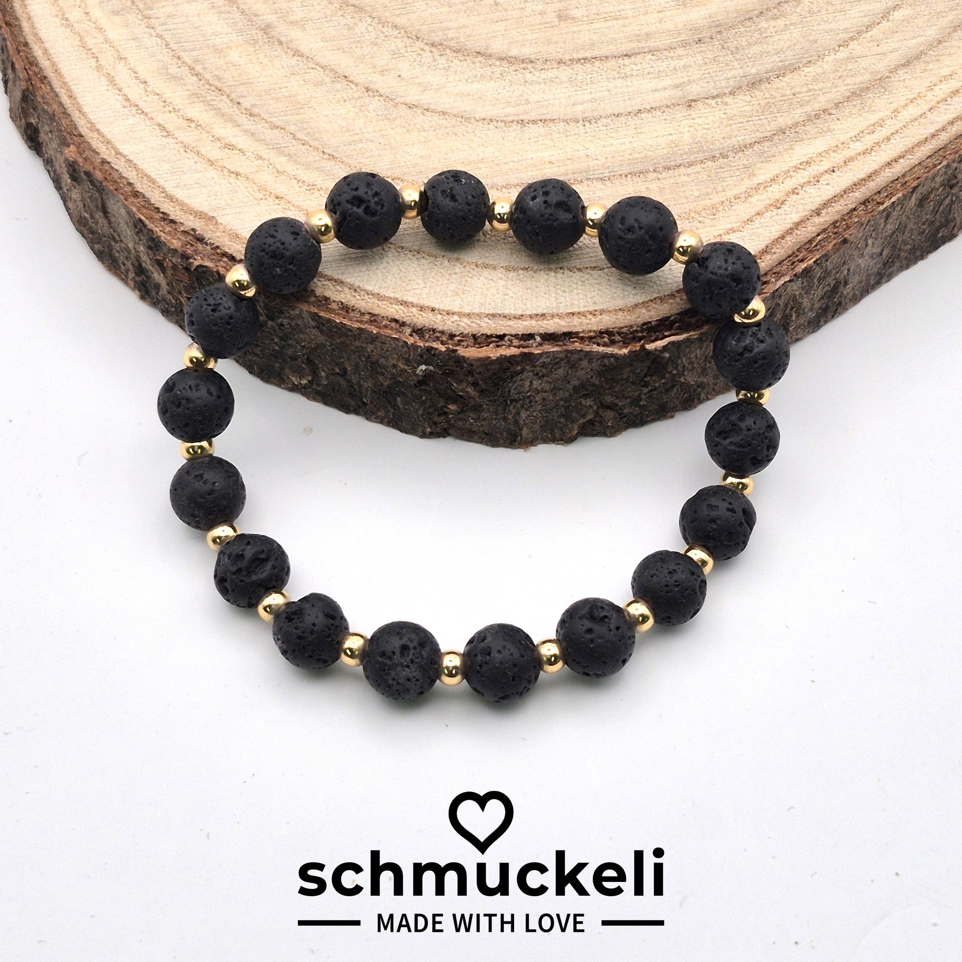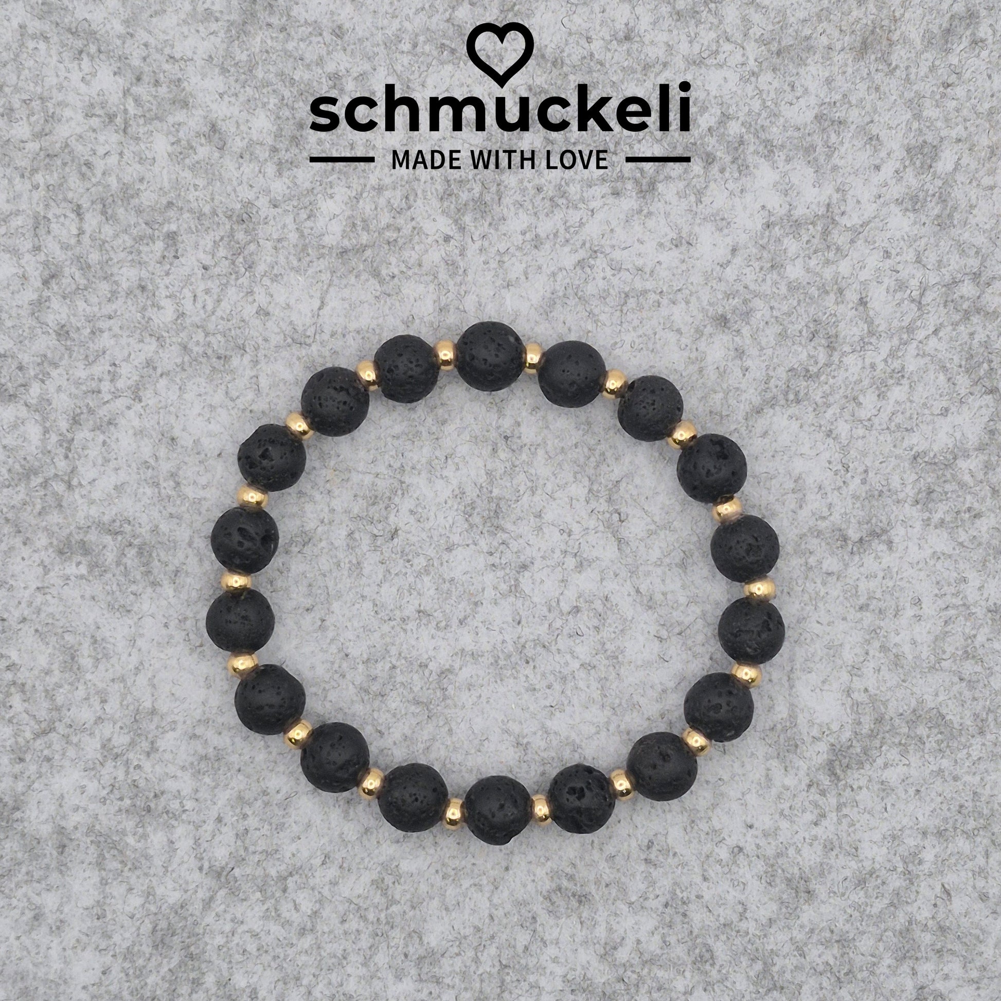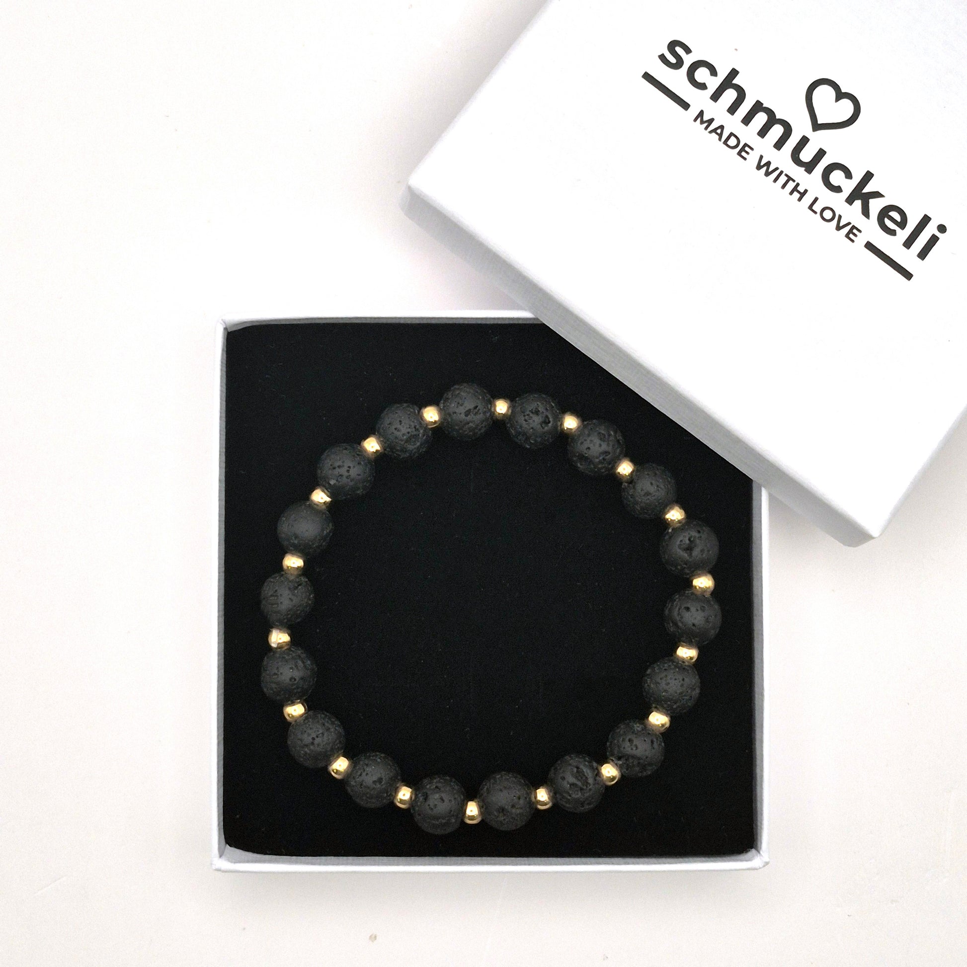 Perlenarmband Aetheris - Lava und vergoldete Edelstahlperlen