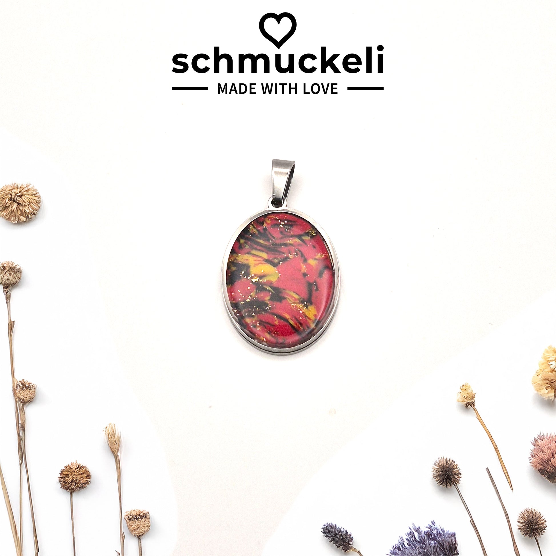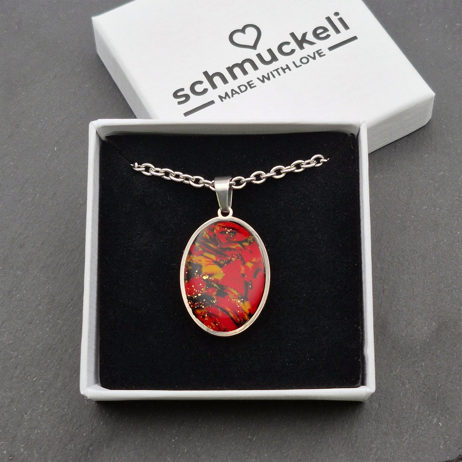 Ovaler Anhänger Herzglut – Anhänger der Leidenschaft - mit 45 cm langer Edelstahlkette