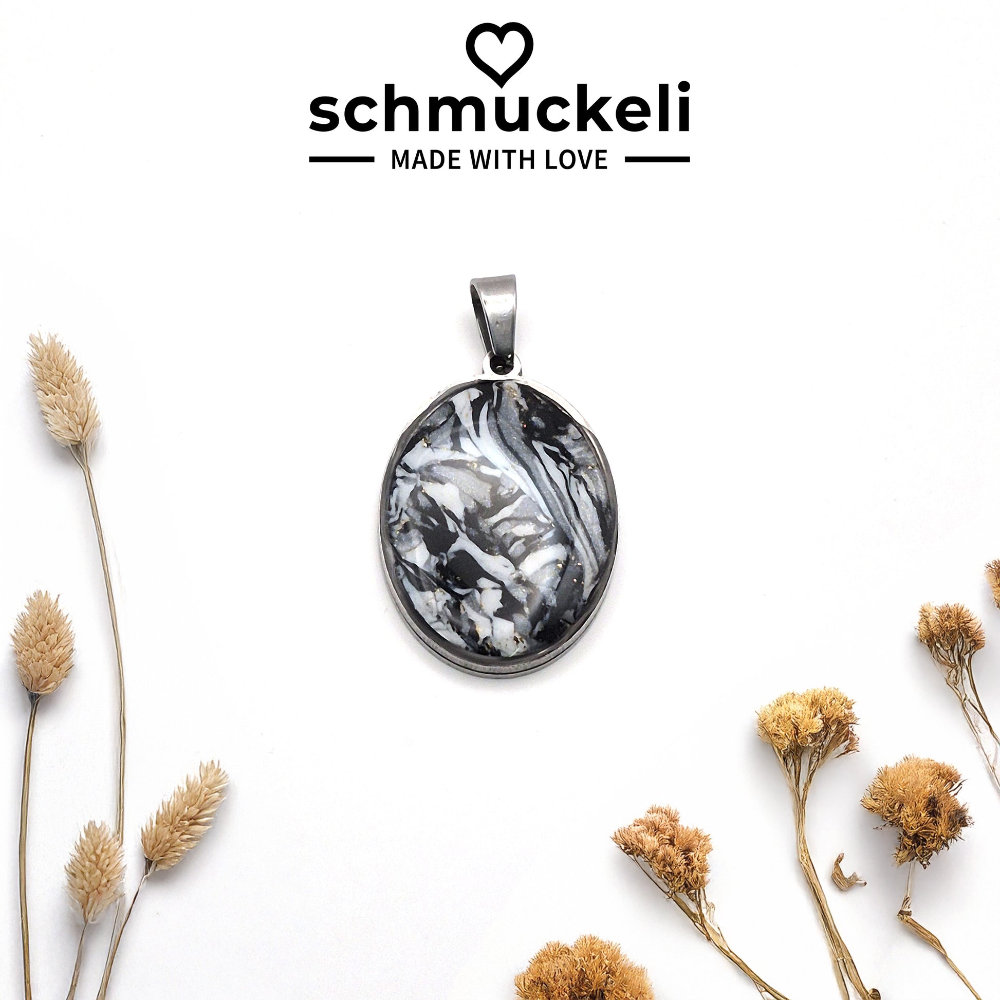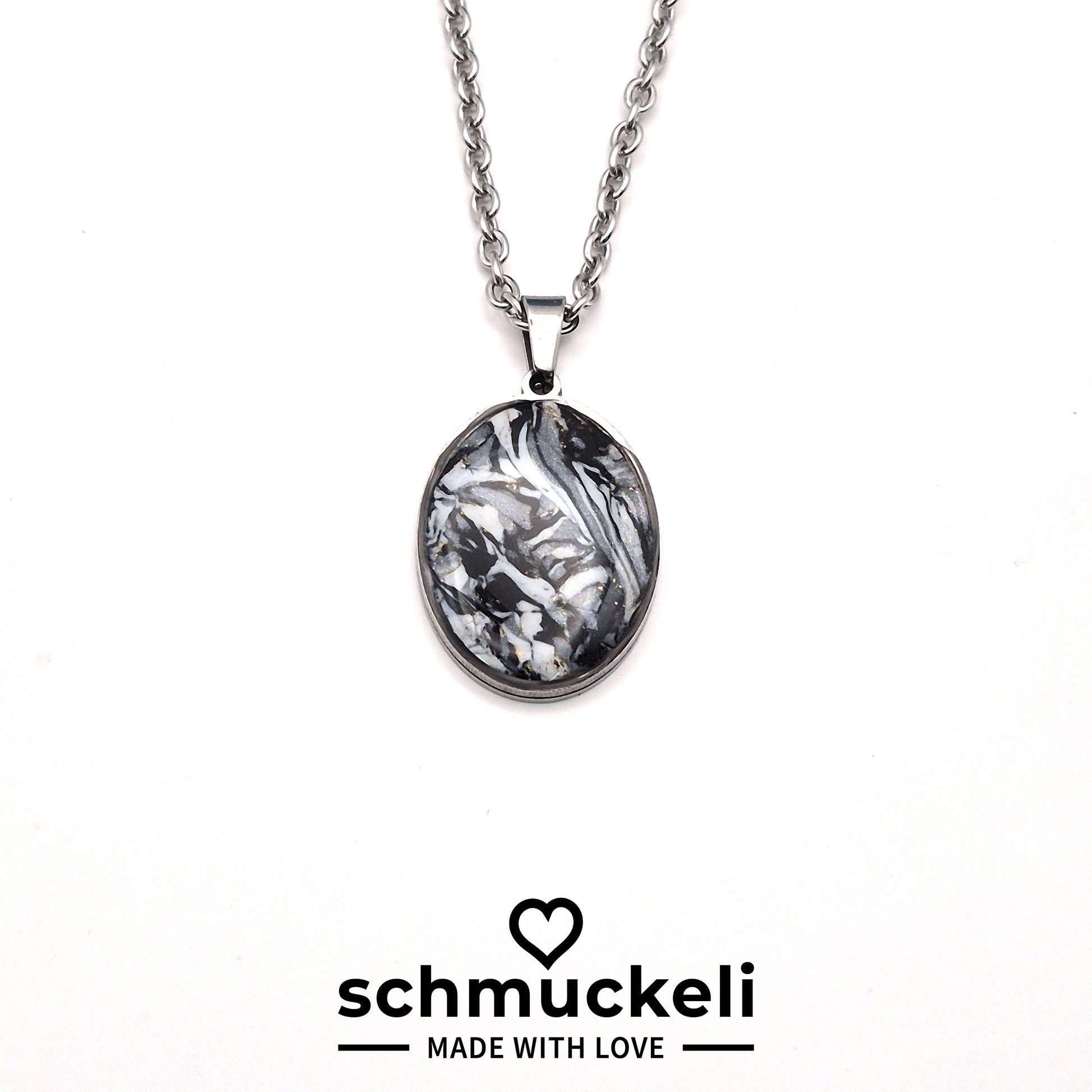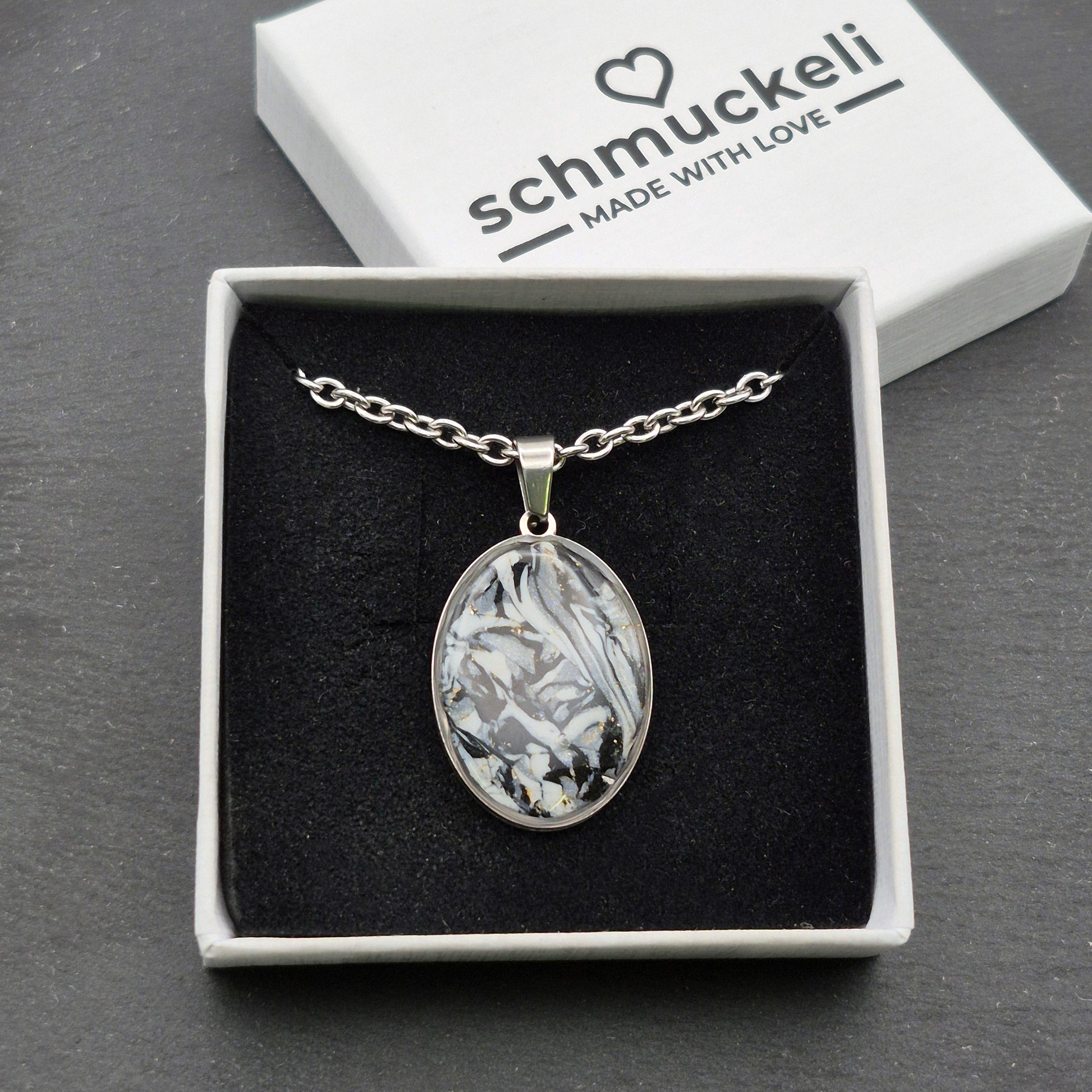 Ovaler Anhänger Marmortraum – Liebevoll gefertigtes Schmuckunikat in edler Marmor-Optik - mit 45 cm langer Edelstahlkette