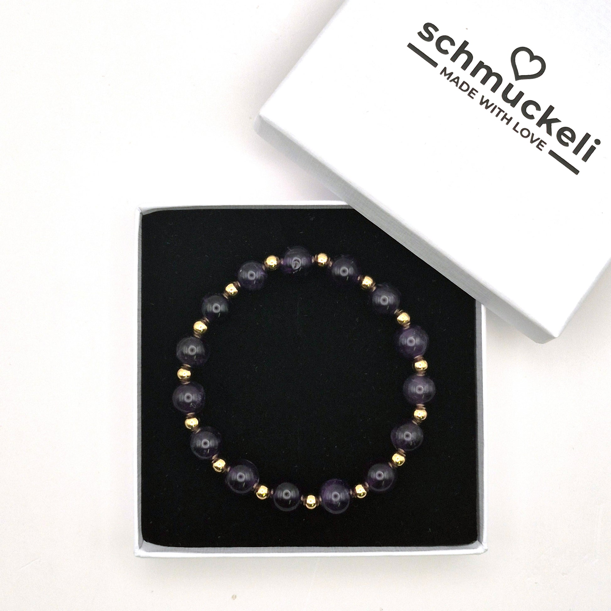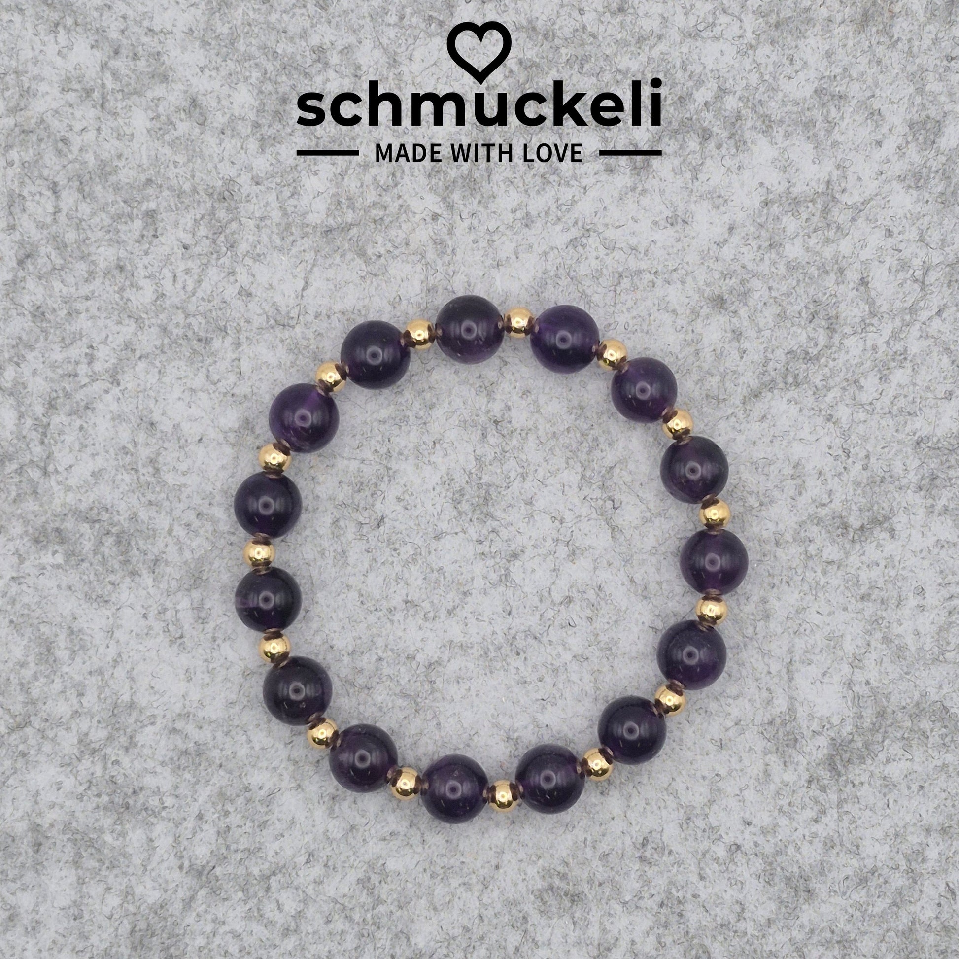 Perlenarmband Noirae - Amethyst und vergoldete Edelstahlperlen