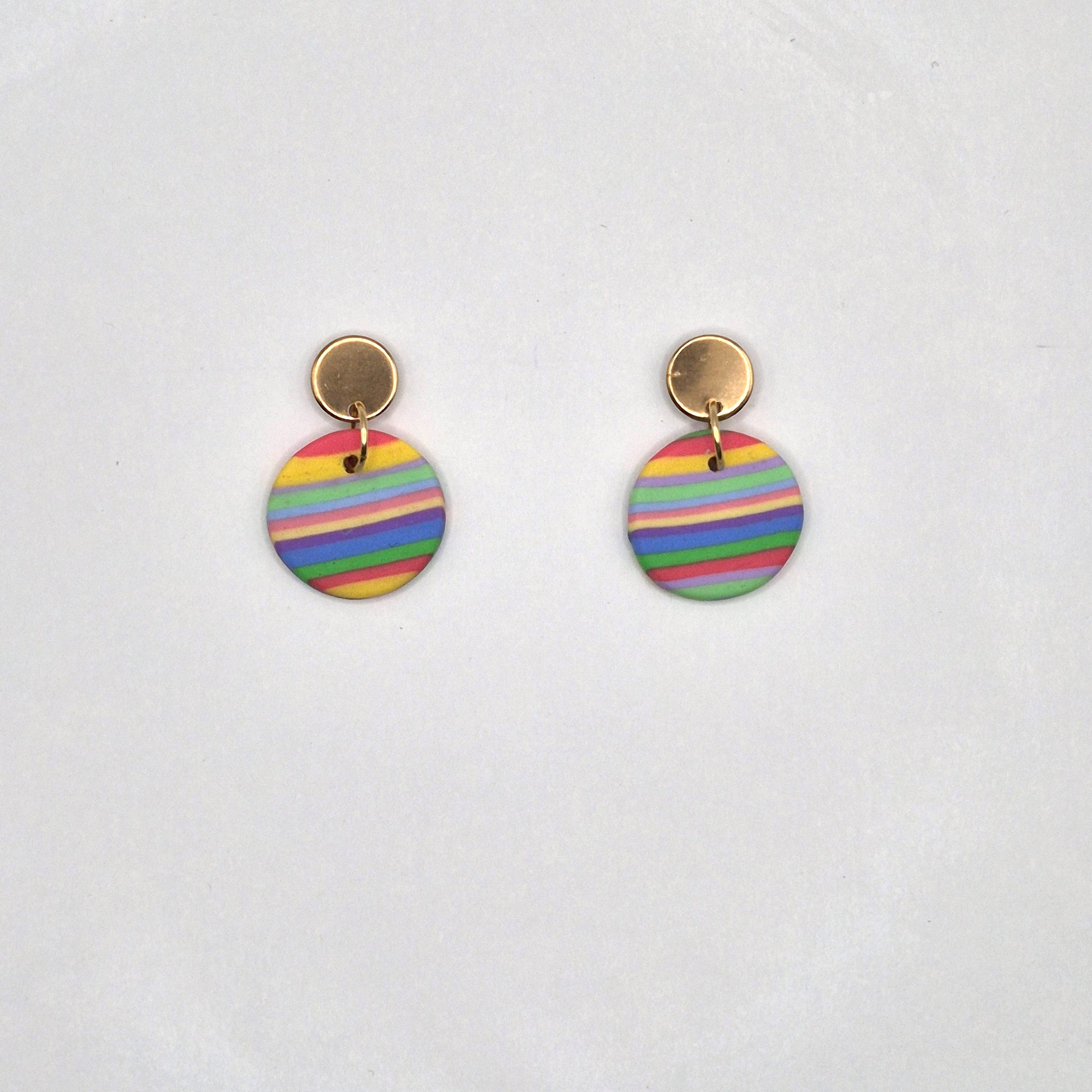 Regenfreude – Runde Ohrringe in Regenbogenfarben aus Polymer Clay