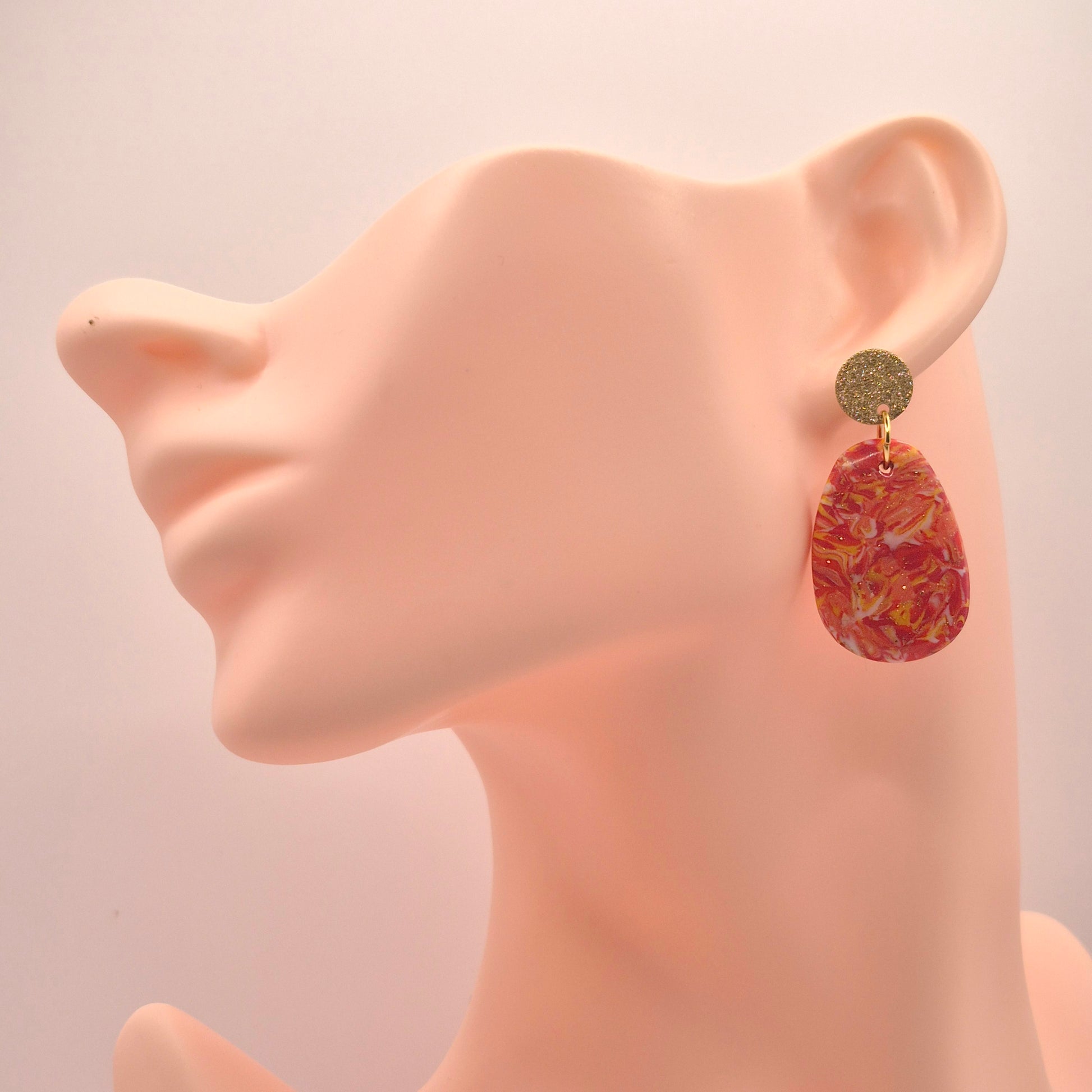 Jeder Ohrring ist handgefertigt aus hochwertigem Polymer Ton – leicht zu tragen, ausdrucksstark im Stil. Jedes Paar ist ein Unikat – kleine Unregelmäßigkeiten gehören zum Charme echter Handarbeit.