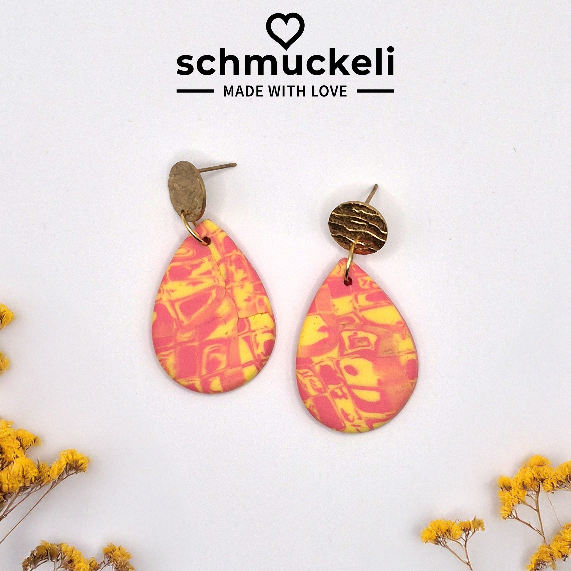 Strahlend wie ein Sommertag: Unsere Ohrringe Sonnenglanz vereinen warme Gelb- und Rosatöne in einem einzigartigen Muster, das an Sonnenstrahlen auf Blütenblättern erinnert. Jeder Anhänger ist handgefertigt aus hochwertigem Polymer Clay – leicht, angenehm zu tragen und ein echtes Unikat.