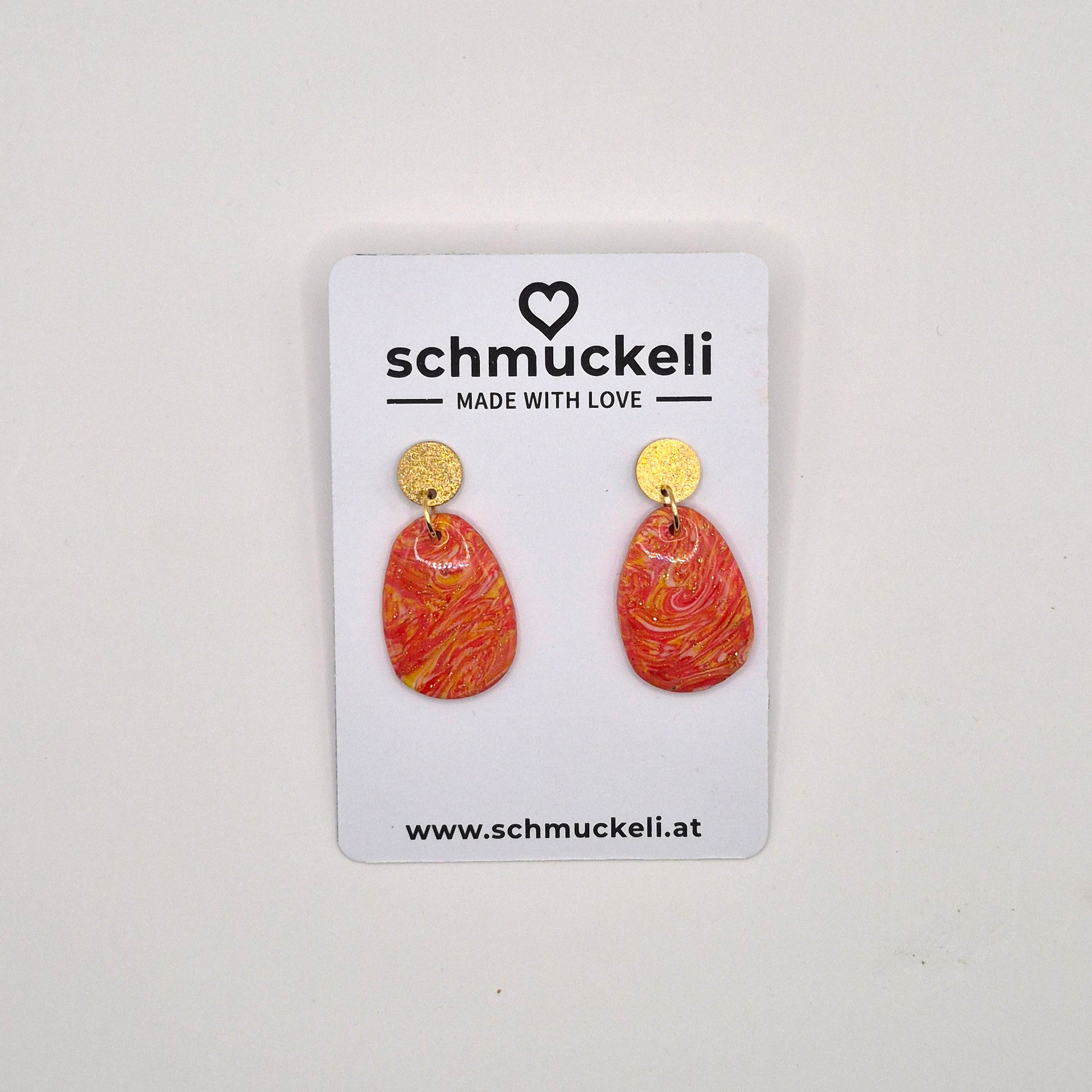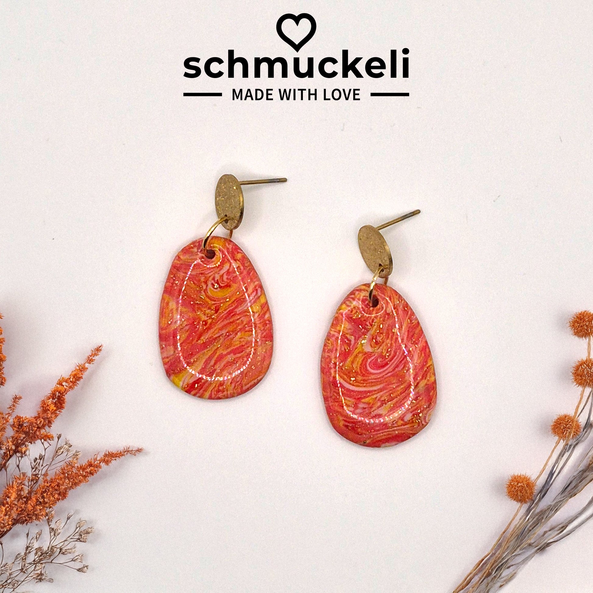 Sonnenwirbel – Leuchtende Marmor-Ohrringe in Rot-Orange-Gold